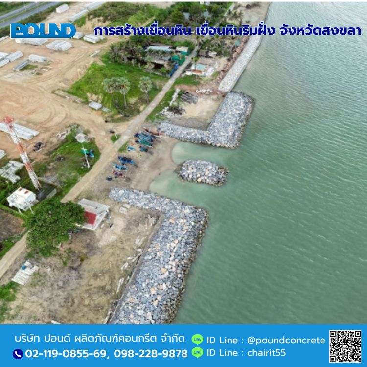 การ สร้างเขื่อนหิน (Rock Revetment / Seawall) คือโครงสร้างป้องกันชายฝั่งที่ใช้ “หินก้อนใหญ่” วางซ้อนกันเป็นชั้นๆ เพื่อป้องกันคลื่นกัดเซาะ ช่วยรักษาหน้าดิน ปกป้องพื้นที่ชุมชน ถนน และสิ่งปลูกสร้างริมทะเลหรือริมแม่น้ำให้ปลอดภัย เหมาะกับพื้นที่ที่มีคลื่นแรง หรือพื้นที่ที่มีการสูญเสียชายฝั่งต่อเนื่องหลายปี
